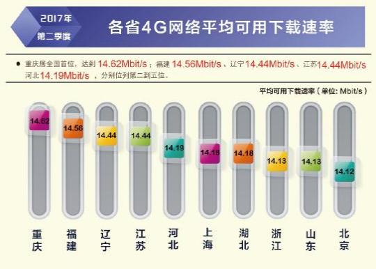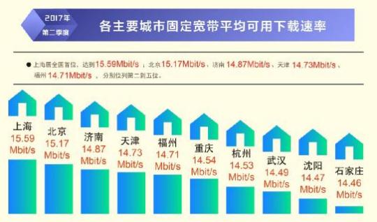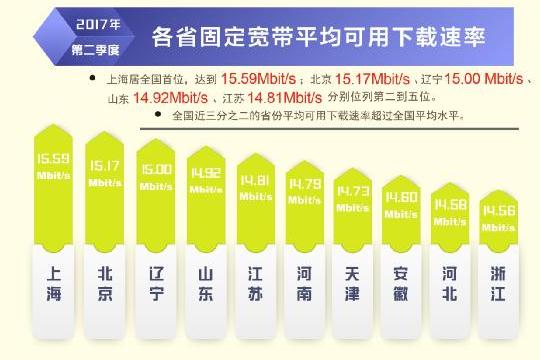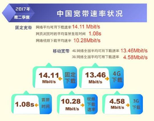 日前,寬帶發(fā)展聯(lián)盟發(fā)布了第 16 期《中國(guó)寬帶速率狀況報(bào)告》(2017 年第二季度)。報(bào)告顯示 2017 年第二季度我國(guó)固定寬帶網(wǎng)絡(luò)平均下載速率達(dá)到 14.11Mbit/s,比 2017 年第一季度提高了1.1Mbit/s,同比去年第一季度提升了 34.8%。自 2015 網(wǎng)絡(luò)“提速降費(fèi)”工作開展以來(lái),我國(guó)固定寬帶可用下載速率連續(xù) 10 個(gè)季度持續(xù)提升,總提升幅度達(dá)到 3.3 倍。同時(shí),我國(guó)移動(dòng)寬帶用戶使用 4G 網(wǎng)絡(luò)訪問互聯(lián)網(wǎng)時(shí)的平均下載速率達(dá)到 13.46Mbit/s,環(huán)比 2017 年第一季度也有 14.2%的提升。